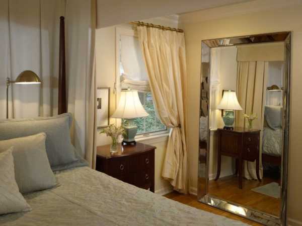 - Разместить зеркало на длинной стене. Это визуально обрежет помещение и превратит прямоугольную конструкцию в квадрат.
