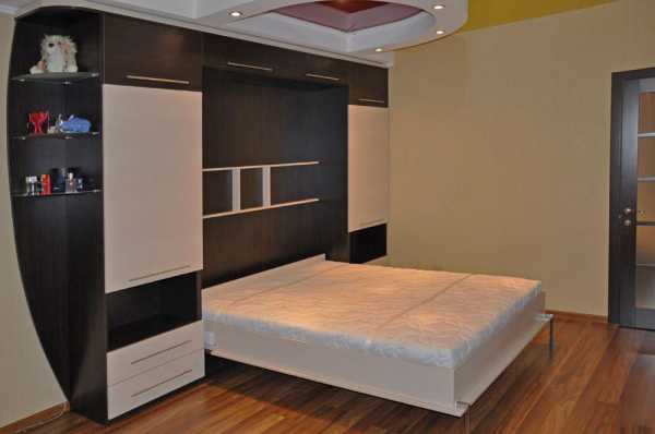 Хорошим выбором будет и компактная встроенная конструкция, не оставляющая зазоров между кроватью и стеной.