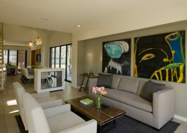 dizhomes.comПри расстановке мебели в гостиной оставляйте свободный проход из одной части комнаты в другую. Сложный зигзаг только увеличит число разбитых ваз и синяков.