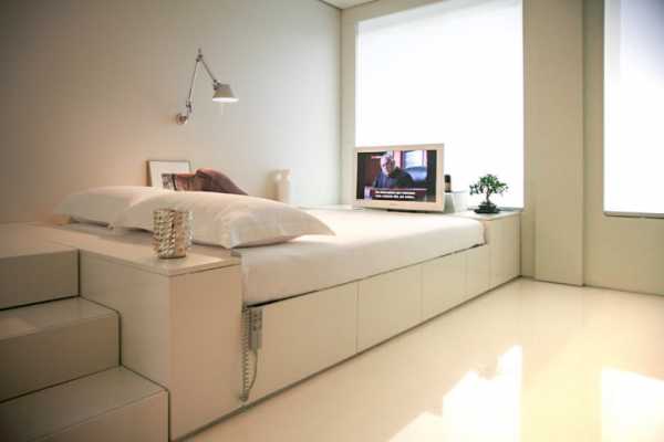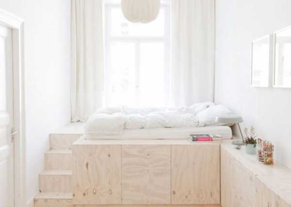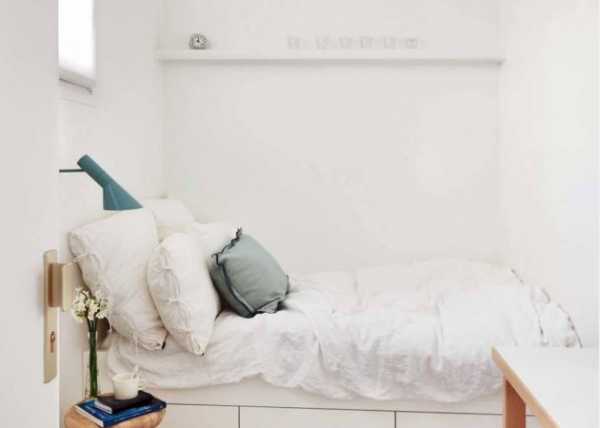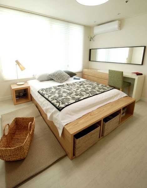 happymodern.ruИзбегайте больших шкафов. В спальне можно оборудовать место для хранения под кроватью.