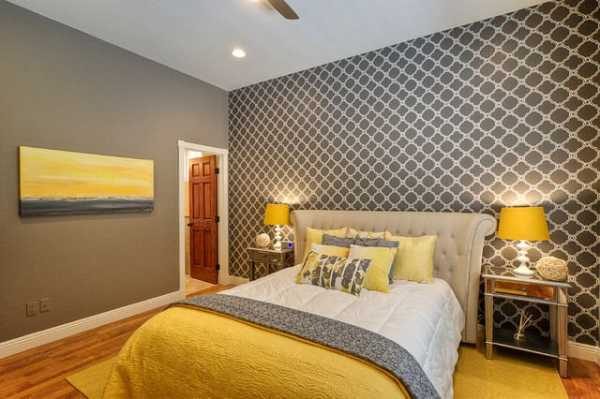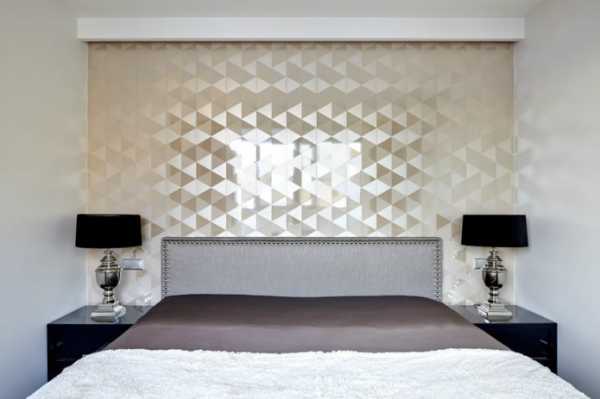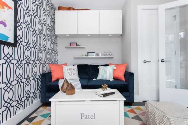 - Еще один способ поможет сделать помещение просторнее – оклейте одну стену обоями с геометрическим рисунком, а остальные оставьте однотонными. Этот прием включает обман зрения, который делает комнату просторнее.