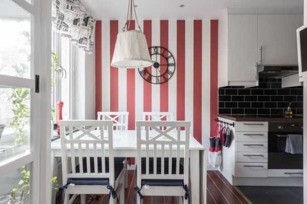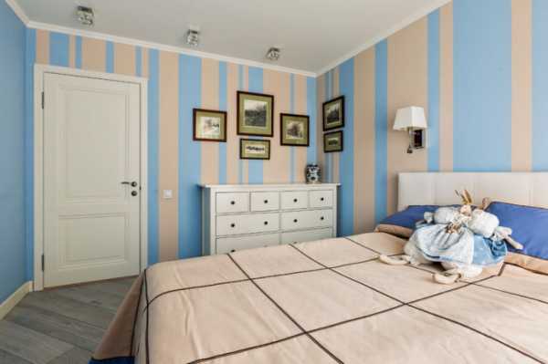 Кроме того, достаточно известным является прием с использованием полосатых обоев. Горизонтальные полоски помогают создать ощущение расширенного пространства. В то же самое время, они несколько «занижают» потолок. И наоборот, вертикальные полосы способствуют появления иллюзии того, что стены стали выше. Однако сам размер комнаты зрительно уменьшается. Так что, последний способ, хоть он и успешно применяется в морских интерьерах и в некоторых других стилях, вряд ли подойдет для стен маленькой и узкой спальни, детской или гостиной.