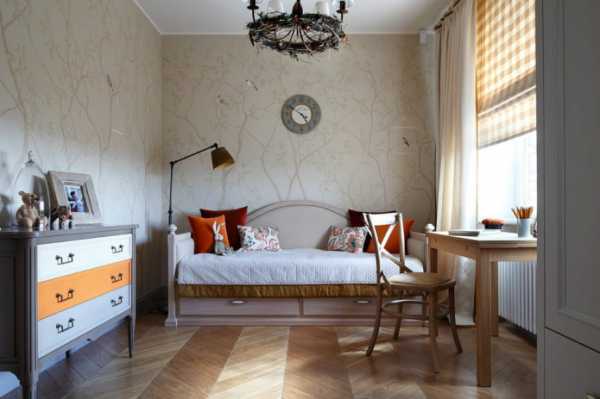 Безусловно, такие пространства, которые отличаются некоторой диспропорцией, это «головная боль» для дизайнера. Что уж говорить о простом обывателе, который не привык к решению подобных задач. Кстати, одним из наиболее эффективных приемов является использование крупных узоров и рисунков на обоях. К ним также могут относиться вензеля и другие варианты орнаментов. А вот мелкие узоры в таких случаях использовать не рекомендуется, поскольку они наоборот, способны значительно сужать зрительные размеры и без того маленькой комнаты. Обои для узкой комнаты фото:
