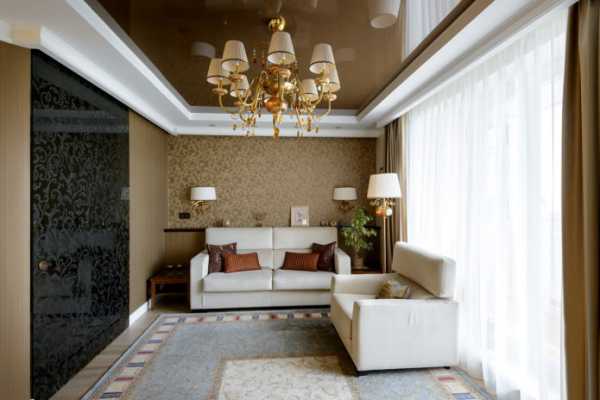 Не стоит забывать и о сочетании обоев с цветом и фактурой потолка. Чтобы сделать помещение выше и шире следует использовать только светлые оттенки для потолка. Глянец над головой поможет наполнить комнату светом, но можно использовать и специальные багеты – их можно красить в любой цвет.