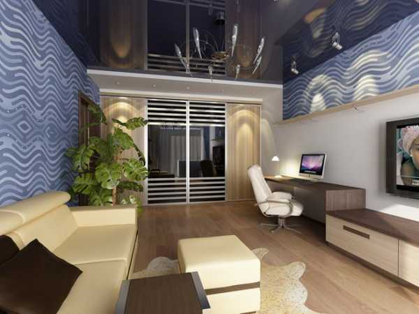 - Попробуйте отказаться от стандартного прямоугольного пространства. Например, подвесной потолок нестандартной формы может изменить внешний вид и расширить узкую комнату. Окраска стен не плоскостями, а фигурными элементами поддержит этот эффект. Но такие сложные варианты оформления лучше доверить профессиональным дизайнерам.