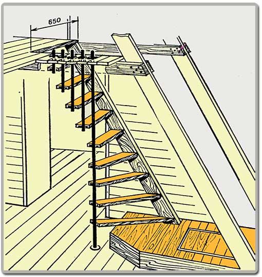Чердачные лестницы 11 – Стальные лестницы с деревянными нитями