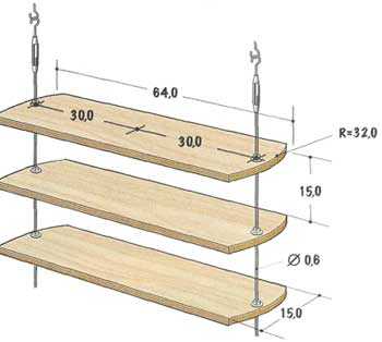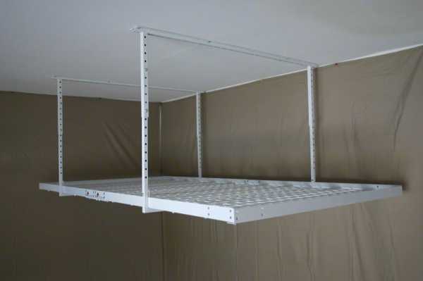 Эти полки подвешиваются на специальные крюки, вбитые или заваренные в потолочные балки перекрытия. Преимущества потолочных полок — быстрый демонтаж в случае надобности. Недостатки — довольно шаткая конструкция, которая от касания может раскачиваться.