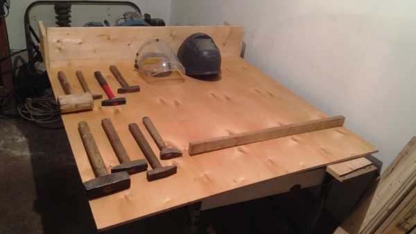 В гараже нужен не только стеллаж, но еще необходим верстак и стенд для ручного инструмента — всевозможных ключей и другой мелочевки, которой много и придумать какое-то определенное удобное место хранения сложно.