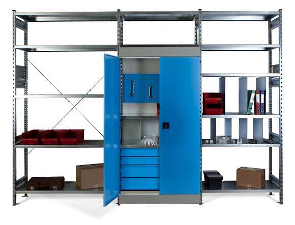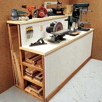Стеллажи для гаража с верстаком удобны