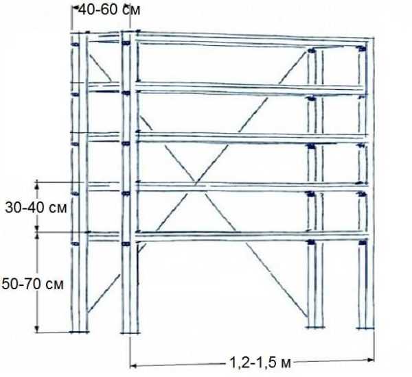 Стеллажи в гараж можно сделать по этому чертежу (размеры указаны примерные)