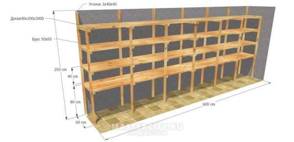 Деревянный стеллаж в гараж — чертеж с размерами