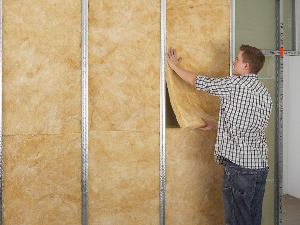 - Минеральная вата — самый распространенный бюджетный материал, эффективно снижающий шумы любого происхождения, имеет длительный срок использования, негорюча, подходит практически для всех поверхностей.