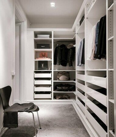 Тщательно продумайте, что вы собираетесь хранить и сколько у вас будет платьев, сумок, костюмов и обуви, чтобы убедиться, что у вас достаточно места для их хранения. То же самое касается аксессуаров, таких как галстуки, украшения, часы и ремни, для которых вы можете получить множество красивых выдвижных ящиков или тонких выдвижных ящиков.