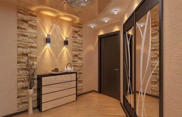- Рассмотрите возможность качественного освещения, выберите места расположения осветительных приборов. Для больших, просторов холлов-коридоров можно использовать подвесные люстры, множественные точечные подвесы по периметру, декоративные настольные лампы в определенных местах (возле зеркала, у платяного шкафа, столика, пуфика, рядом с аксессуарами на стенах). В маленьких прихожих такое нагромождение невозможно и недопустимо, здесь более уместно многоуровневое точеное освещение, небольшие аккуратные плафоны, бра.