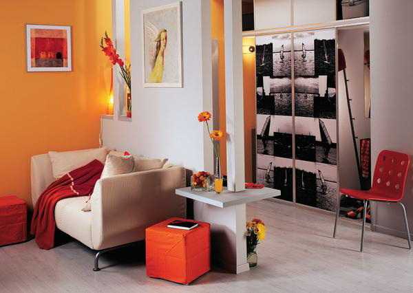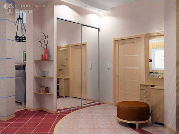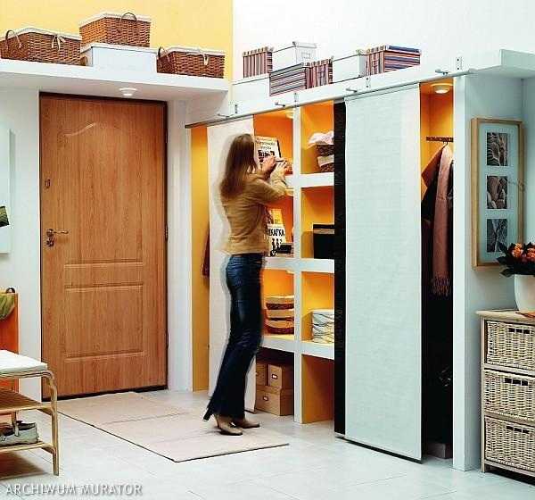 Чем меньше в маленькой квартире будет мебели, тем лучше. Намного разумнее установить один большой шкаф-купе с наличием большого количества отделений, чем несколько шкафчиков и тумбочек, расположенных хаотично по всему коридору. Дверцы шкафов лучше выбирать раздвижные.