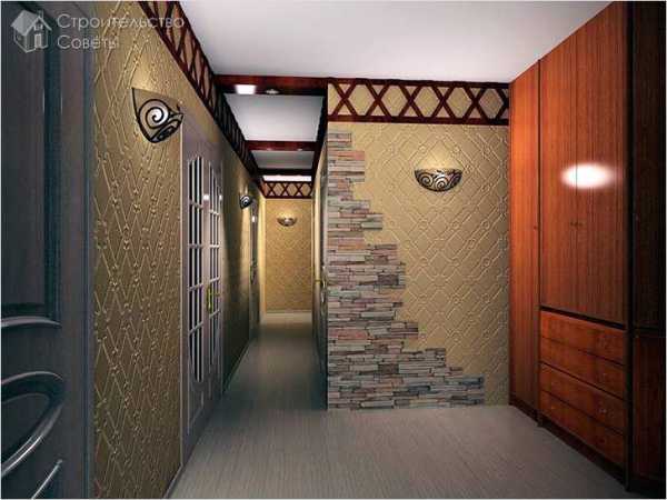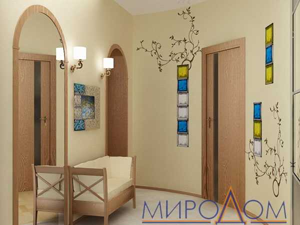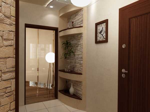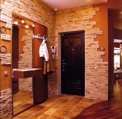 Если вам нравится, можно украсить стены камнем. Декоративный камень на стенах прихожей – мода последних лет. Вместо дверей есть возможность использовать арки.