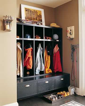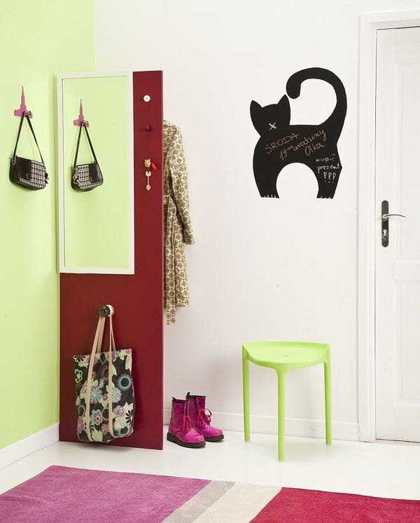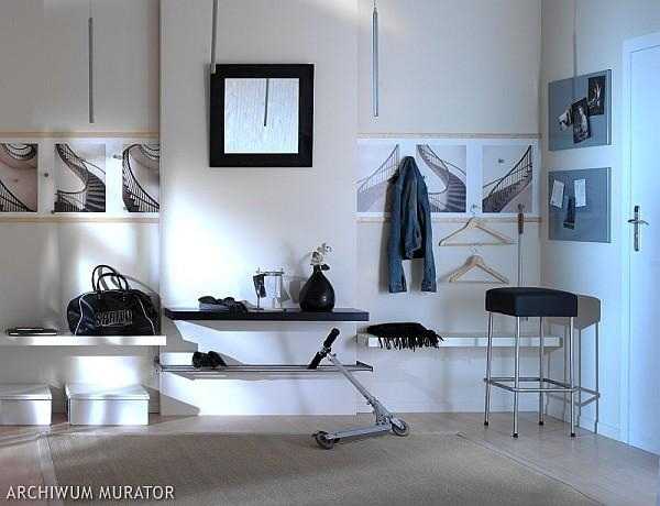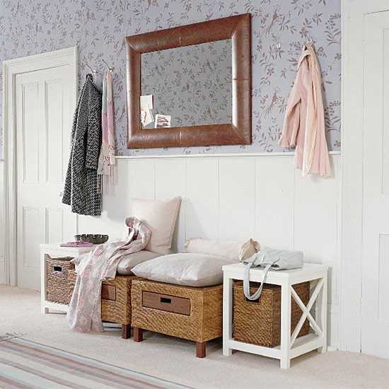 Если вы предпочитаете не устанавливать мебель, чтобы не сужать пространство, то для хранения вещей можно повесить крючки, а также небольшие красивые полки для головных уборов и обуви.