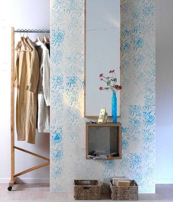 Лучше для стен выбирайте либо моющиеся обои, либо красящие вещества. Жидкие обои – ноу-хау, которое используется для оформления стен в прихожей. Такие материалы позволят вам на более долгий срок забыть о новом ремонте прихожей. Ведь сюда попадает вся пыль и грязь прямо с улицы. Именно поэтому не рекомендуется использовать ковровые покрытия на полу. Стены и потолок лучше выровнять перед нанесением конечного покрытия. После выравнивания можно приступать к отделке.