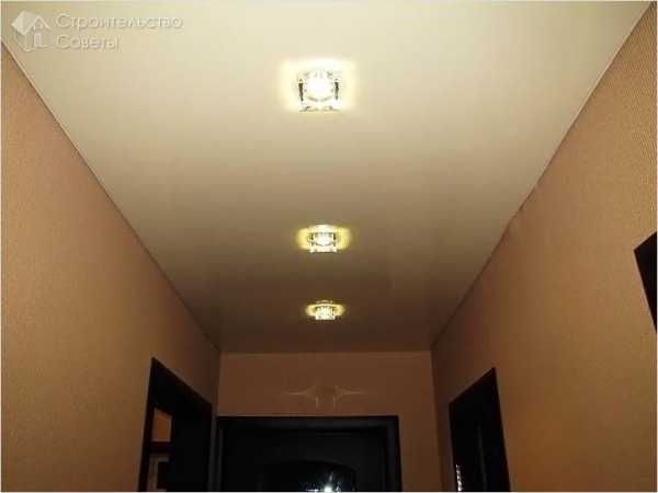 - точечные потолочные светильники по всей длине коридора на одинаковом расстоянии;