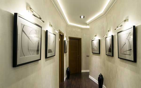 Если коридор достаточно длинный – выключатели для электричества следует расположить в двух местах, в начале и в конце коридора. Удобно будет установить датчики движения.