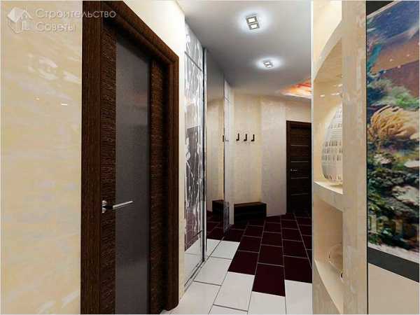 Следует выбирать не очень темные цветовые оттенки керамической плитки. Даже слишком темное покрытие на полу способно зрительно уменьшить размер коридора.