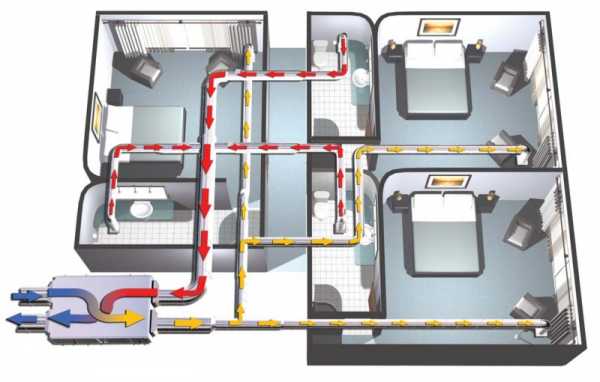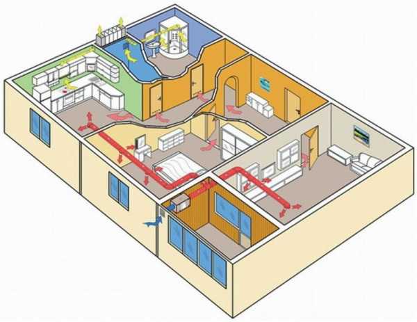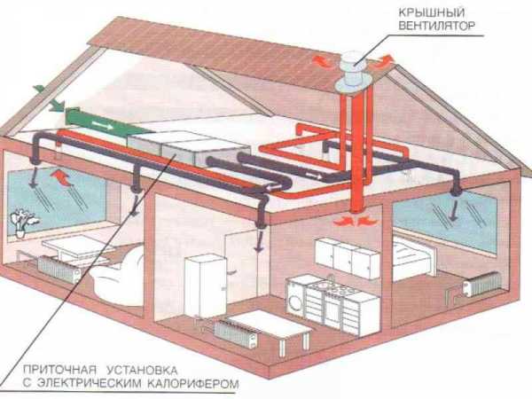 Установка вентиляции в доме своими руками начинается с выбора схемы. Она также предельно проста: из "грязных" зон воздух принудительно вытягивается наружу. При необходимости, взамен закачивают свежий.