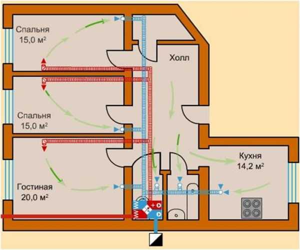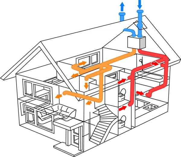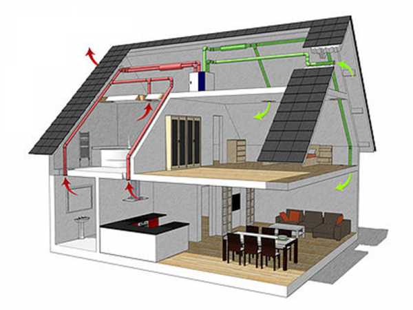 Такая система прекрасно работает в загородных домах. Главное всё сделать правильно. Необходимо сказать, что отвод воздуха из помещения происходит через двери, окна и стандартные вентиляционные системы.