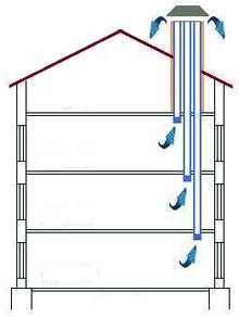Второй вид предполагает наличие дополнительных агрегатов, втягивающих или выталкивающих воздух, организацию системы каналов.