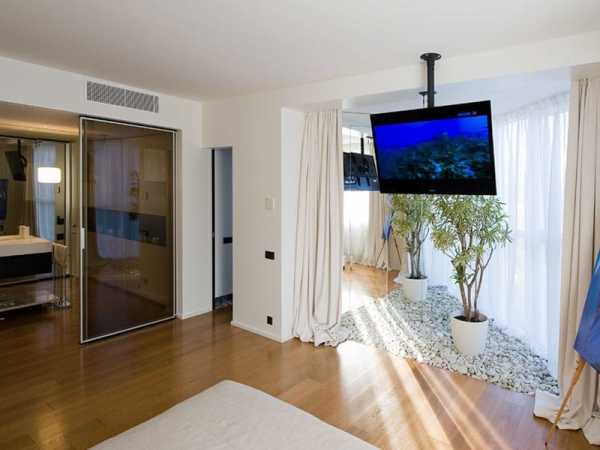 Обычно его устанавливают под потолком, в самой высокой точке комнаты, чтобы можно было в дальнейшем задекорировать его.