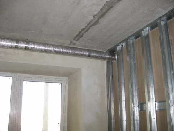Отверстия в потолке можно сделать любыми способами. Главное выдержать размер диаметра воздухопровода, чтобы он спокойно мог поместиться в это отверстие.