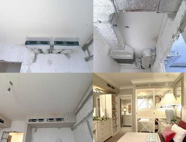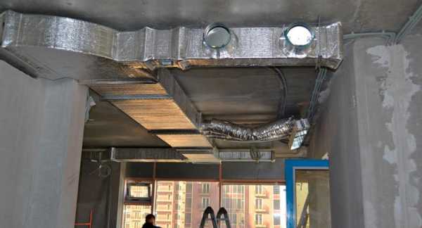 Короба-воздуховод декорируются гипсокартоном, прячется под чистовую отделку. Начиная работы, стоит определиться с материалом каналов. Они могут быть пластиковыми, жестяные, выполнены с круглым или квадратным сечением. Последний вариант занимает меньше места, обеспечивает широкие возможности в декоре, поэтому более популярен.