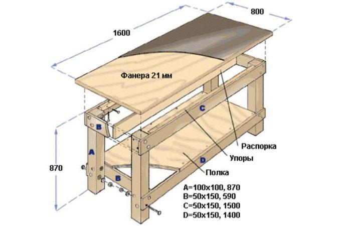 Идеальным вариантом будет совмещение материалов. Каркас лучше делать из дерева, а вот рабочую поверхность — из прочного металла. Это позволит создать долговечную, надёжную и удобную конструкцию всего за несколько часов.