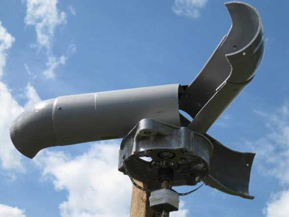 Роторные самодельные ветрогенераторы очень надёжны в работе и экономично выгодны, единственным их несовершенством является страх сильных порывов ветра. Принцип работы имеет простой — вихрь через лопасти заставляет крутиться генератор. В процессе этих интенсивных вращений вырабатывается энергия, необходимого вам напряжения. Такая электростанция – это очень удачный способ обеспечить электричеством небольшой дом, конечно, чтобы выкачивать воду из скважины его мощности будет недостаточно, но посмотреть телевизор или включить свет во всех помещениях с его помощью возможно.