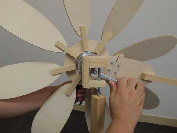 После сборки ветроколесо нуждается в балансировке. Его закрепляют на штативе горизонтально. Операцию проводят в закрытом от ветра помещении. В случае правильно проведённой балансировки колесо не должно двигаться. Если же лопасти вращаются сами, то их требуется подточить до придания равновесия всей конструкции.