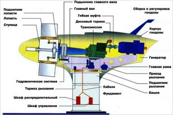 Как и говорилось выше, ветряной электрогенератор имеет довольно простую конструкцию, и решить вопрос, как сделать ветряк своими руками, не очень сложно. Если разбираться в его конструкции, то условно этот агрегат можно разделить на четыре основных узла.