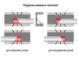 Распил галтелей для внешних углов выполняется в противоположную сторону