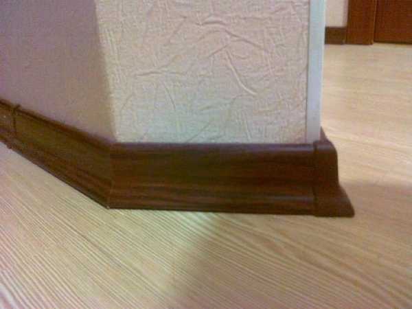 Наружные углы следует более тщательно подгонять. Потом даже маленькую щель будет практически невозможно убрать. Особенно, если использовался широкий плинтус.