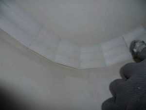 Для этих углов применяют другие прорези. Они тоже имеют уклон 45 градусов, но находятся с другой стороны. Далее, после разметки и обрезки, 2 плинтуса прикладывают к соответствующему месту на потолке. Проводится корректировка.