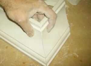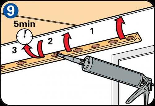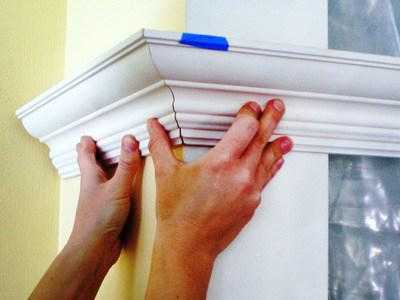 Устанавливаются готовые детали на жидкие гвозди или клей. Наносить клеящий состав необходимо на тыльную сторону материала. Обратите внимание на то, чтобы клей находился в тех местах, которые соприкасаются с потолком и стеной.