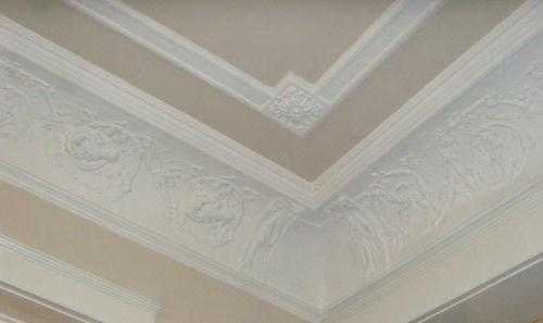 - Потолочный плинтус из пенополистирола является универсальным отделочным элементом, поскольку он может использоваться для отделки огрунтованных поверхностей, а также потолков, облицованных пластиковыми панелями. Крепление плинтуса может производиться на специальный клей либо гипсовую шпаклёвку.