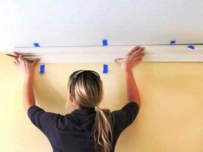 - Прямо по потолку прочерчивают линию по верхней кромке потолочного плинтуса.