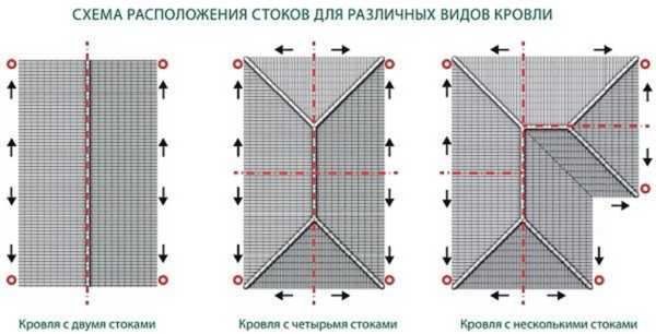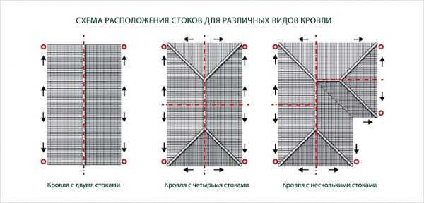 В зависимости от количества скатов крыши, существуют разные схемы монтажа водостока.