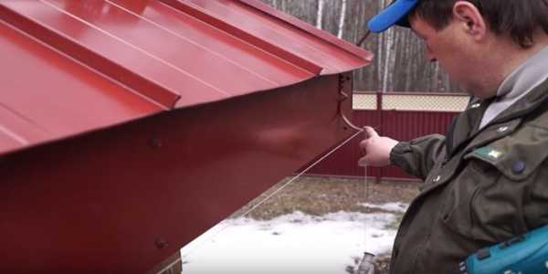 Далее фиксируют первый крюк для желоба в начале свеса кровли. После того как определен желаемый уклон желоба (как правило этот параметр составляет не более 2 см на один метр) фиксируется самый крайний крюк для карниза. Натянув между ними канат, обозначают места фиксации всех остальных крюков (шаг не более 6 см).
