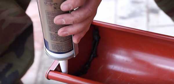 По краям желоба крепят заглушки с резиновыми прокладками. Все стыки тщательно промазываются силиконовым герметиком.