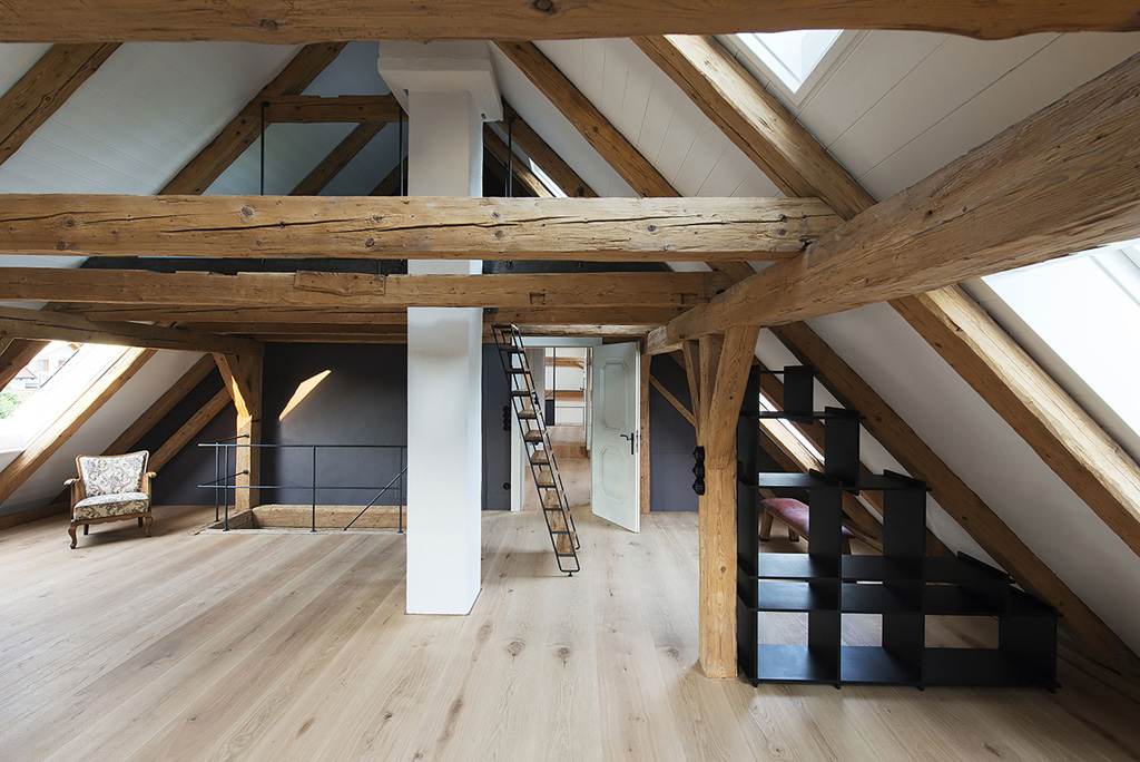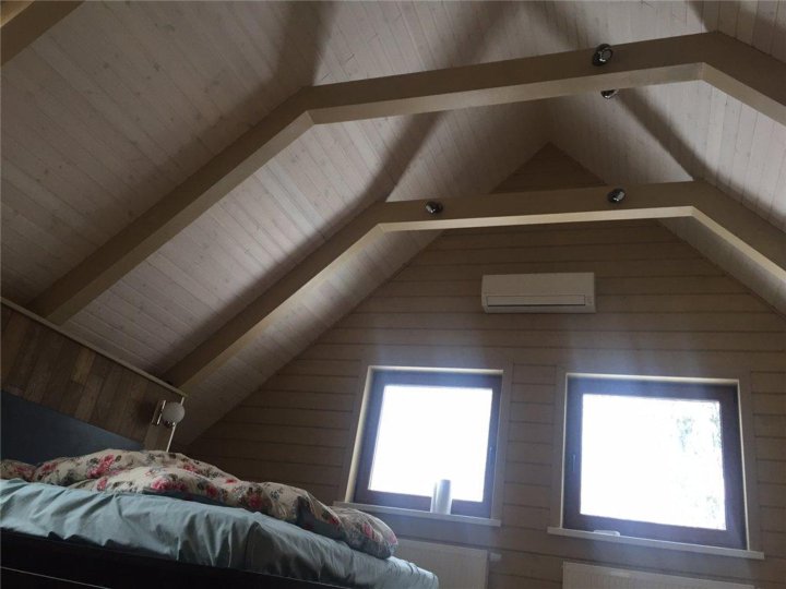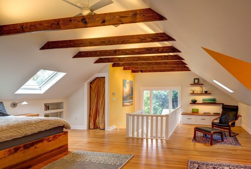 Вот что часто можно увидеть на чердаке стропильной крыши — много бревен посередине!