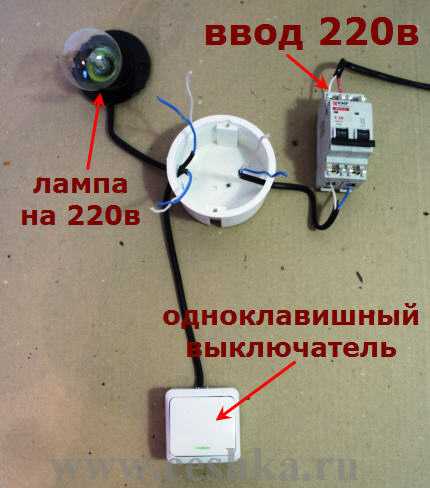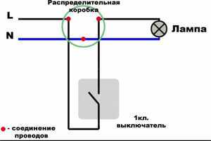Подключение выключателя света с одной клавишей