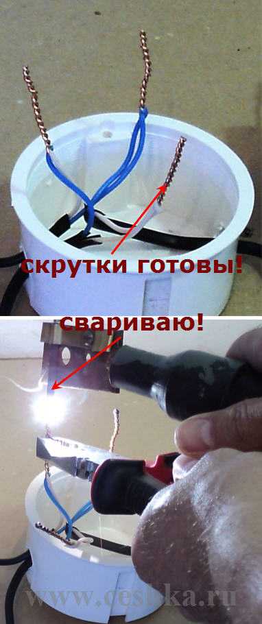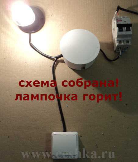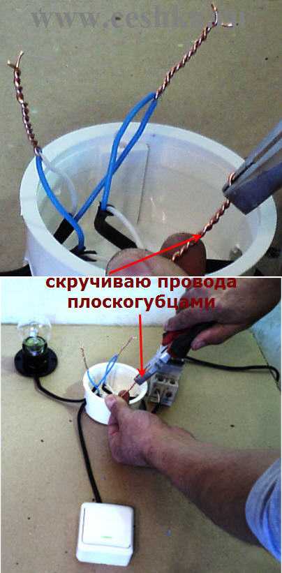 - Соединяем два оставшихся провода (провод от выключателя и от лампы).