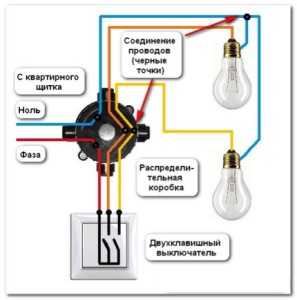 Необходимость подключения с распределительной коробки обусловлена наличием в одной комнате нескольких светильников, розеток и выключателей. Задача усложняется, тем, что нужно соединить несколько проводов в устройстве. Подсоединить провод к прибору напрямую проще, чем подключать одновременно светильник, выключатель, провода от электрощитка.