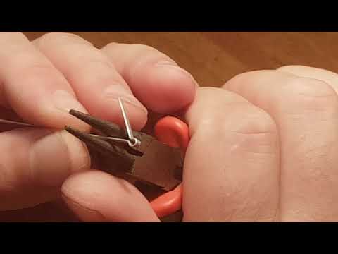 Чтобы сделать ушко, в которое входит крюк, оберните кусок проволоки на самой большой петле круглогубцев. Согните два конца наружу и сделайте две маленькие петли, используя круглогубцы. Отрежьте лишнюю проволоку, используя кусачки и подпилите концы. Если предпочитаете, несколько раз отбейте кусок, чтобы сделать его более прочным. Теперь ваше ушко закончено.