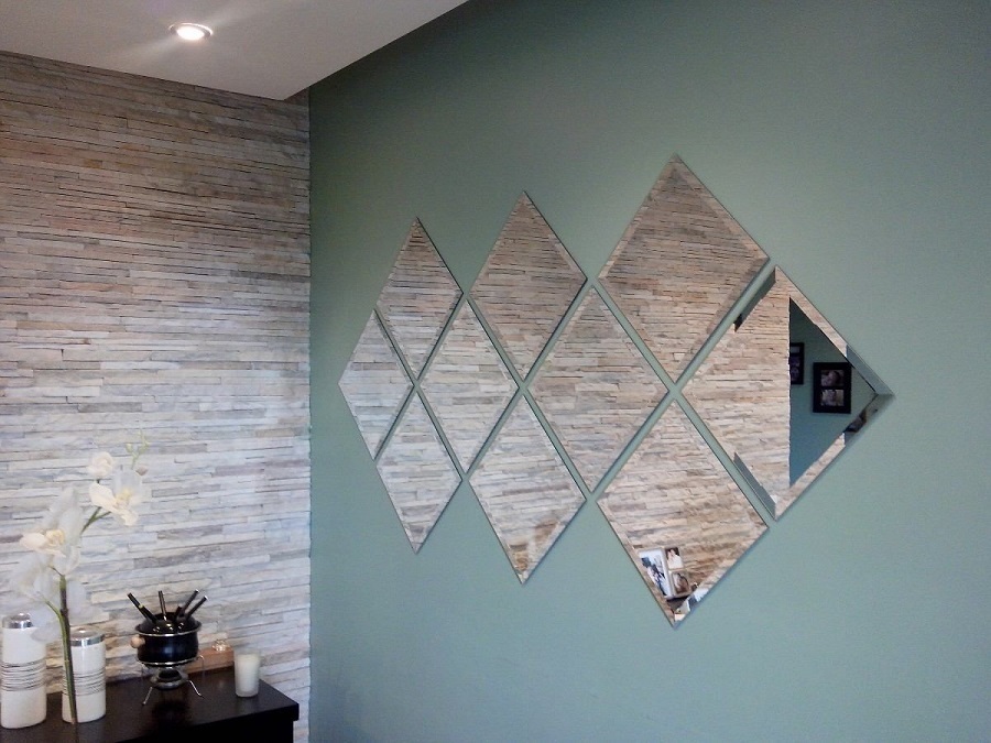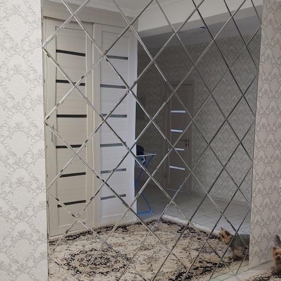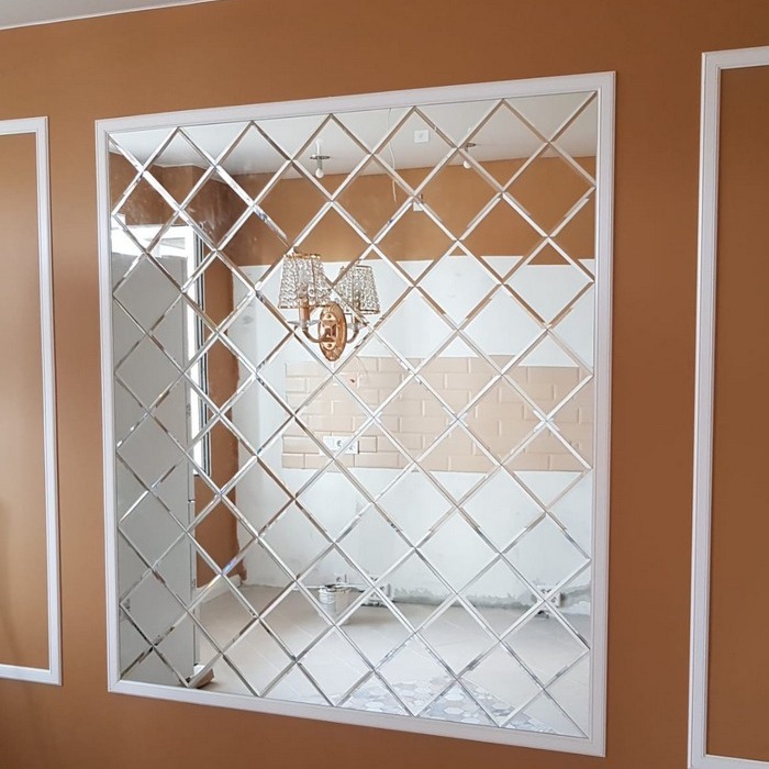 Она представляет собой отрезки зеркал разной формы с безопасными краями. Такое оформление будет уместно в любой комнате. Благодаря богатому ассортименту подобрать правильный вариант зеркальной отделки не составит труда.